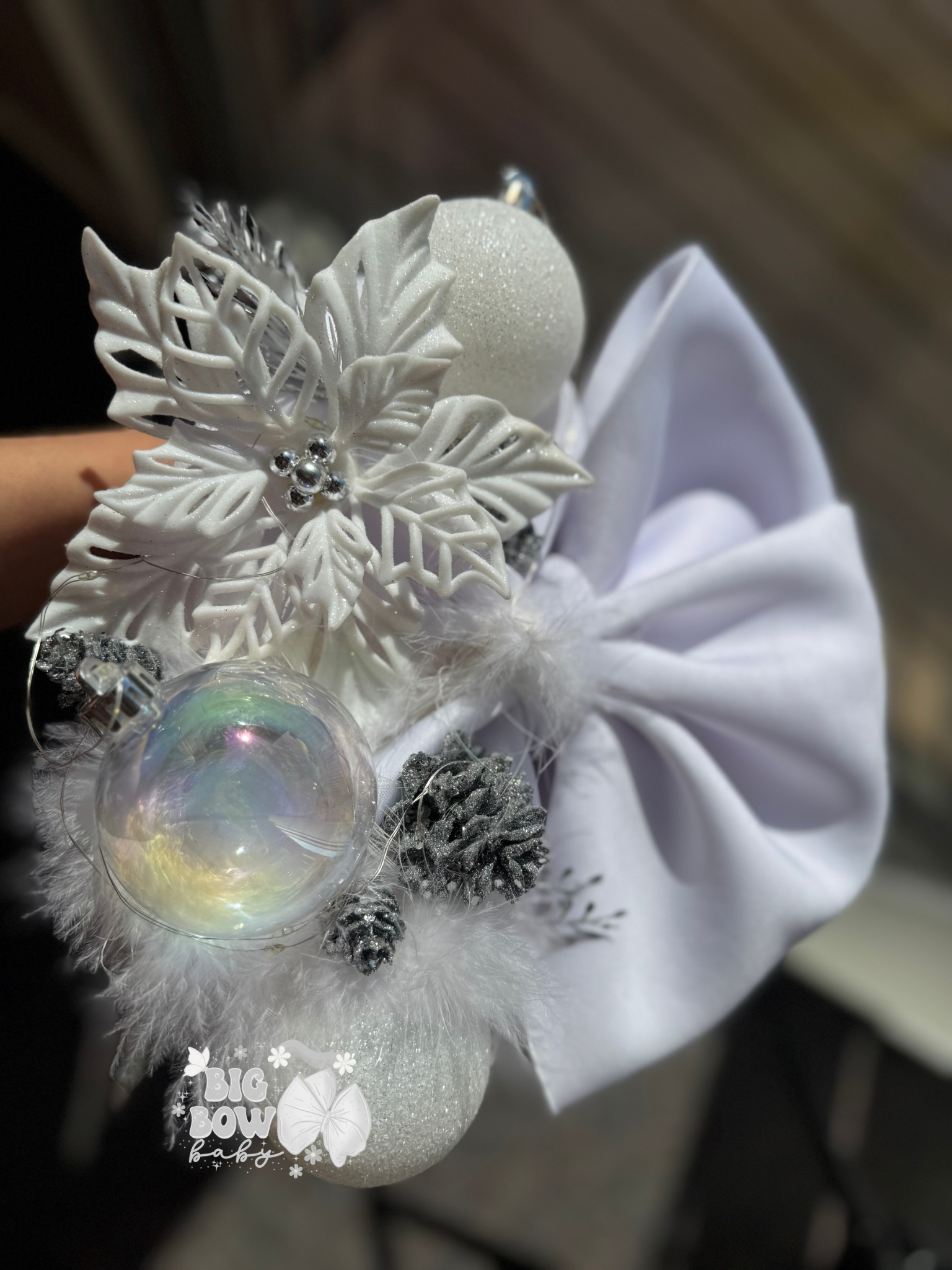 Bow contains small ornaments and pieces, and small fairy lights and battery. Pieces may come off and pose a chocking hazard. I glue everything down to the best of my ability but please handle delicately and with care — do not leave children unsupervised with bows!